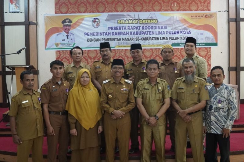 Rakor ini turut dihadiri oleh Kepala Dinas Pemberdayaan Masyarakat Desa/Nagari (DPMDN) Endra Amzar, seluruh Camat, Wali Nagari, dan Bamus se-Lima Puluh Kota.