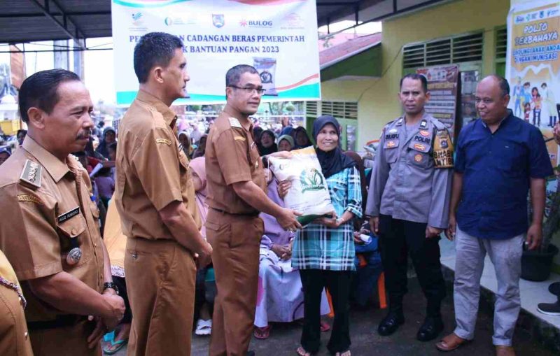 Payakumbuh | tipikal.com — Penjabat Wali Kota Payakumbuh Rida Ananda menyerahkan cadangan beras pemerintah untuk bantuan pangan 2023 kepada sekitar 140 warga Kelurahan Sawahpadang Aua Kuniang, Selasa (11/04/23).