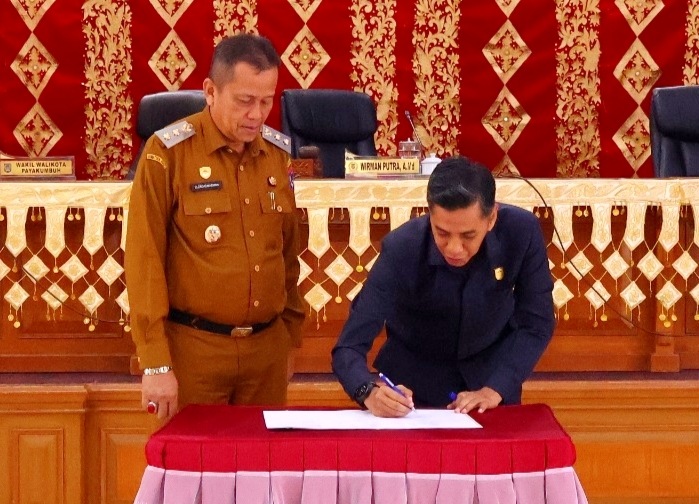 Rapat paripurna ditutup dengan penandatanganan Keputusan DPRD Kota Payakumbuh tentang Program Pembentukan Peraturan Daerah Kota Payakumbuh Tahun 2026, yang disepakati secara aklamasi oleh seluruh anggota DPRD yang hadir. (tpk)