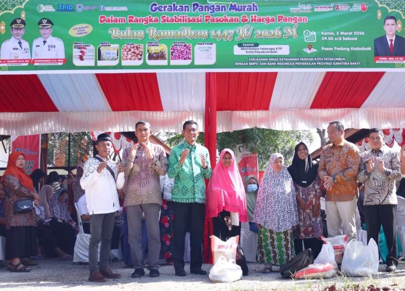Payakumbuh | tipikal.com — Pemerintah Kota Payakumbuh terus menggencarkan stabilisasi pasokan dan harga pangan selama Ramadan hingga menjelang Idul Fitri 1447 Hijriah melalui kegiatan Gerakan Pangan Murah yang digelar di Pasar Padang Kaduduak, Kecamatan Payakumbuh Utara, Kamis, (05/3/2026).