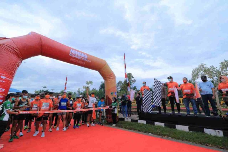 Sebelum dilepas, kegiatan yang bertujuan untuk mengajak masyarakat terutama para pelari bersama-sama berolahraga sambil menikmati keindahan alam serta budaya di Geopark yang ada di Sumbar, Wali Kota Riza Falepi ucapkan selamat berolahraga dan junjung sportivitas serta selalu ingat untuk menjaga protokol kesehatan dalam berolahraga.