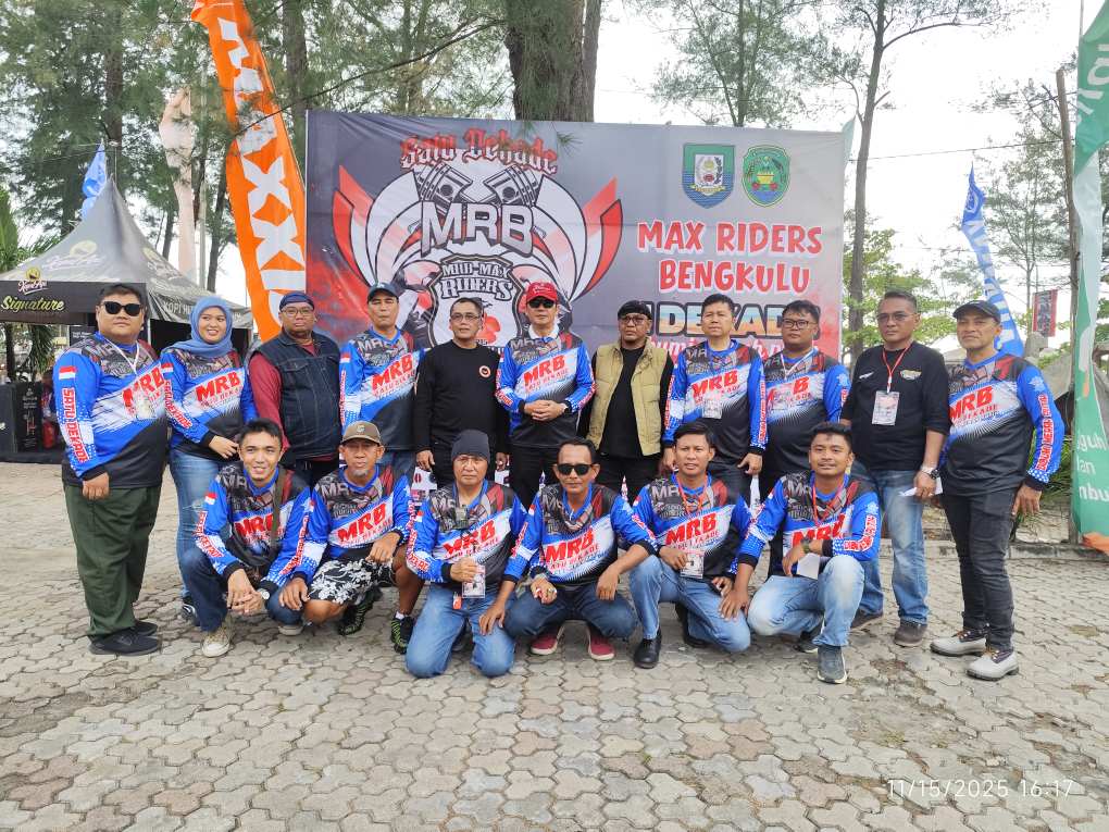 Bengkulu | tipikal.com — Komunitas Max Rider Bengkulu (MRB) merayakan anniversary satu dekade di Aula Serbaguna Pantai Pasir Putih Kota Bengkulu, Sabtu, (15/11/2025). Acara berlangsung meriah dengan dihadiri ratusan bikers dari berbagai provinsi.