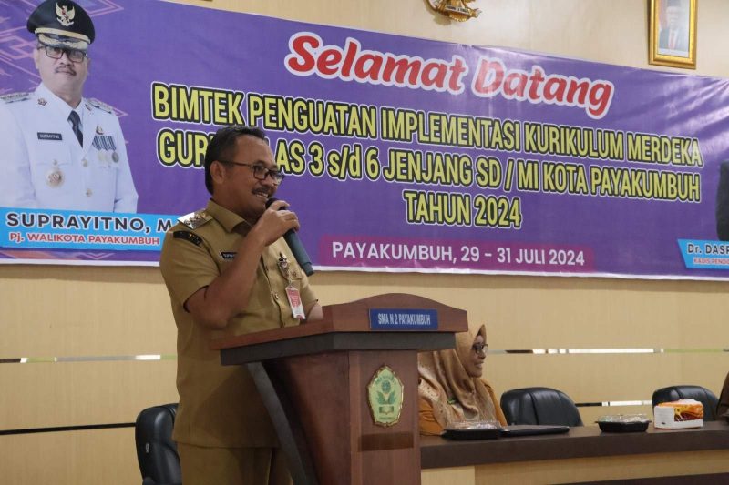 Payakumbuh | tipikal.com – Pj Wali Kota Payakumbuh, Suprayitno, resmi membuka Bimbingan Teknis (Bimtek) Penguatan Implementasi Kurikulum Merdeka untuk guru kelas 3 sampai kelas 6 jenjang SD/MI se-Kota Payakumbuh.
