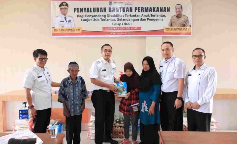 Payakumbuh | tipikal.com — Penjabat Wali Kota Payakumbuh menyerahkan bantuan pemakanan bagi penyandang disabilitas terlantar, anak terlantar, lanjut usia terlantar, gelandangan, dan pengemis di aula kantor bersama Padang Kaduduak, Rabu (7/06/23).