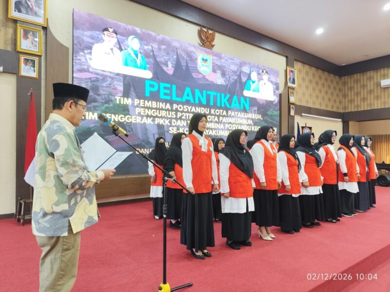 Payakumbuh | tipikal.com — Wali Kota Payakumbuh, Zulmaeta, melantik Tim Pembina Posyandu Kota Payakumbuh, Pengurus Pelayanan Terpadu Pemberdayaan Perempuan dan Anak (P2TP2A), Tim Penggerak PKK, serta TP Posyandu Kecamatan se-Kota Payakumbuh di Aula Josrizal Zein, Lantai III Balai Kota Payakumbuh, Kamis, (12/2/2026).